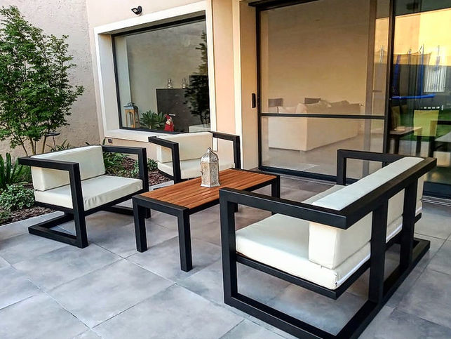El juego Franco está compuesto por 2 sillones de un cuerpo, un sillón de dos cuerpos y una mesa ratona. Estructura fabricada en caño con opción en aluminio con recubrimiento de pintura poliéster, brindándole una alta calidad y resistencia a la intemperie. Estos juegos se pueden hacer a medida. Con sillones de 2 o 3 cuerpos, con mesas a medidas y se les pueden adicionar puf.